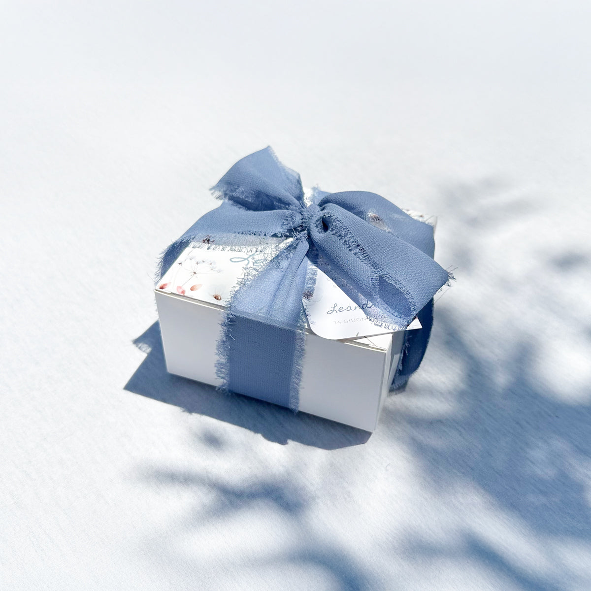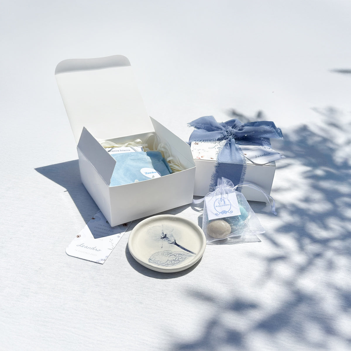 Questa bomboniera elegante è presentata in una raffinata scatola bianca, impreziosita da una grafica personalizzata sulla parte superiore e un tag coordinato con nome e data dell’evento. All’interno, adagiato su un morbido letto di tessuto, si trova un piattino in ceramica decorato a mano, un oggetto unico che diventa un ricordo speciale da custodire. Il piattino standard ha un diametro di 8 cm, ma è disponibile anche una versione più capiente da 14 cm. Completa la confezione un delicato sacchettino in organza con confetti bianchi, per rispettare la tradizione con un tocco di modernità e stile. I confetti, provenienti da una rinomata confetteria artigianale, si distinguono per la loro varietà di gusti e l’eccellenza nella lavorazione. Un dono pensato per sorprendere e per raccontare, fin nei minimi dettagli, la cura e l’amore di un giorno indimenticabile.